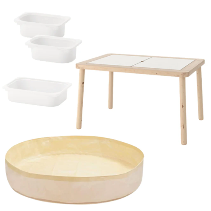 - Sensory table + 1 big tray + 2 small trays (L 83cm x W 58cm x H 48cm)